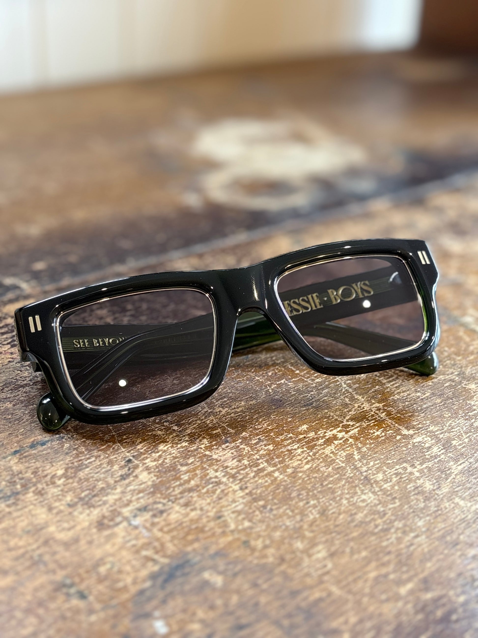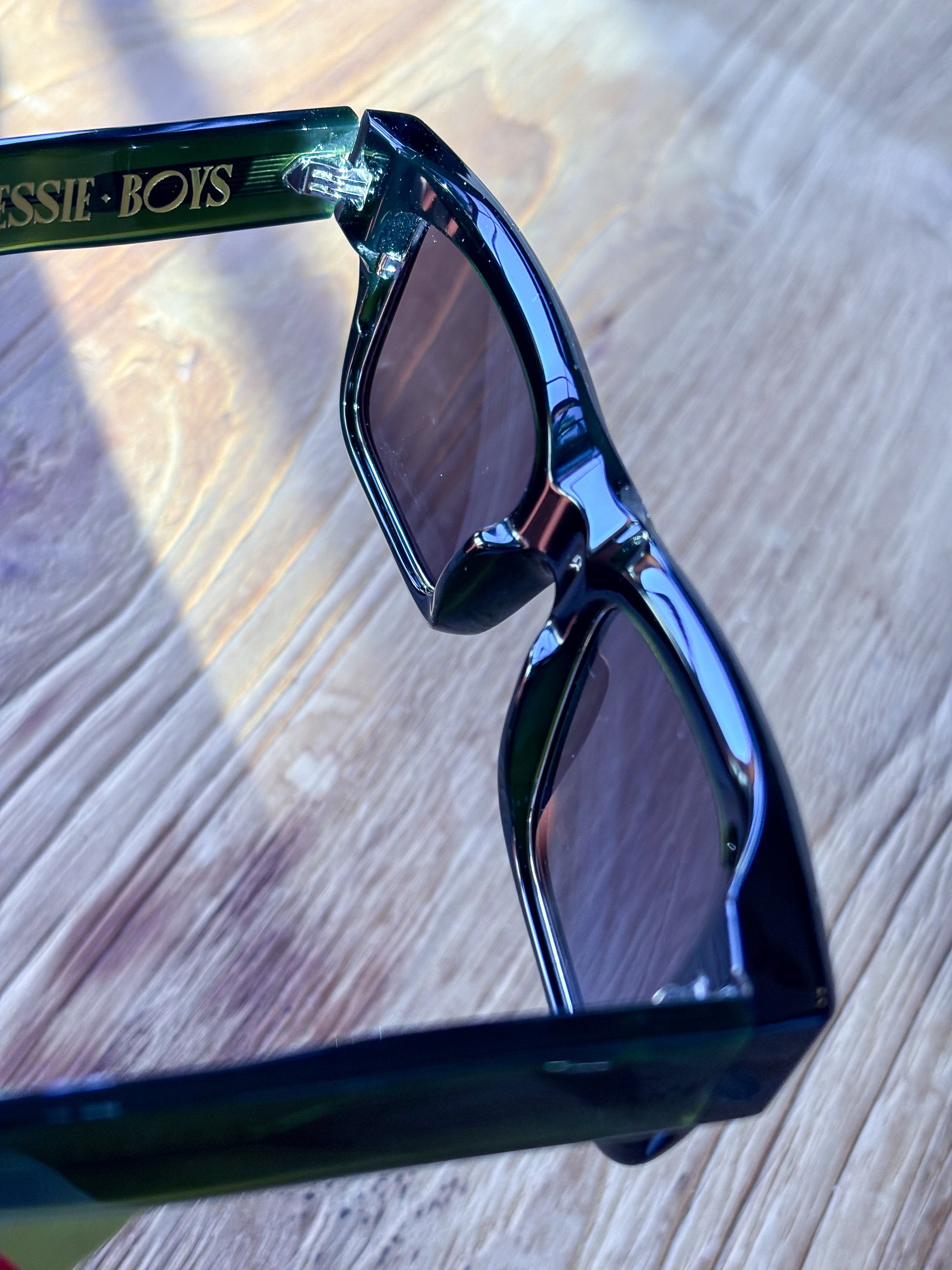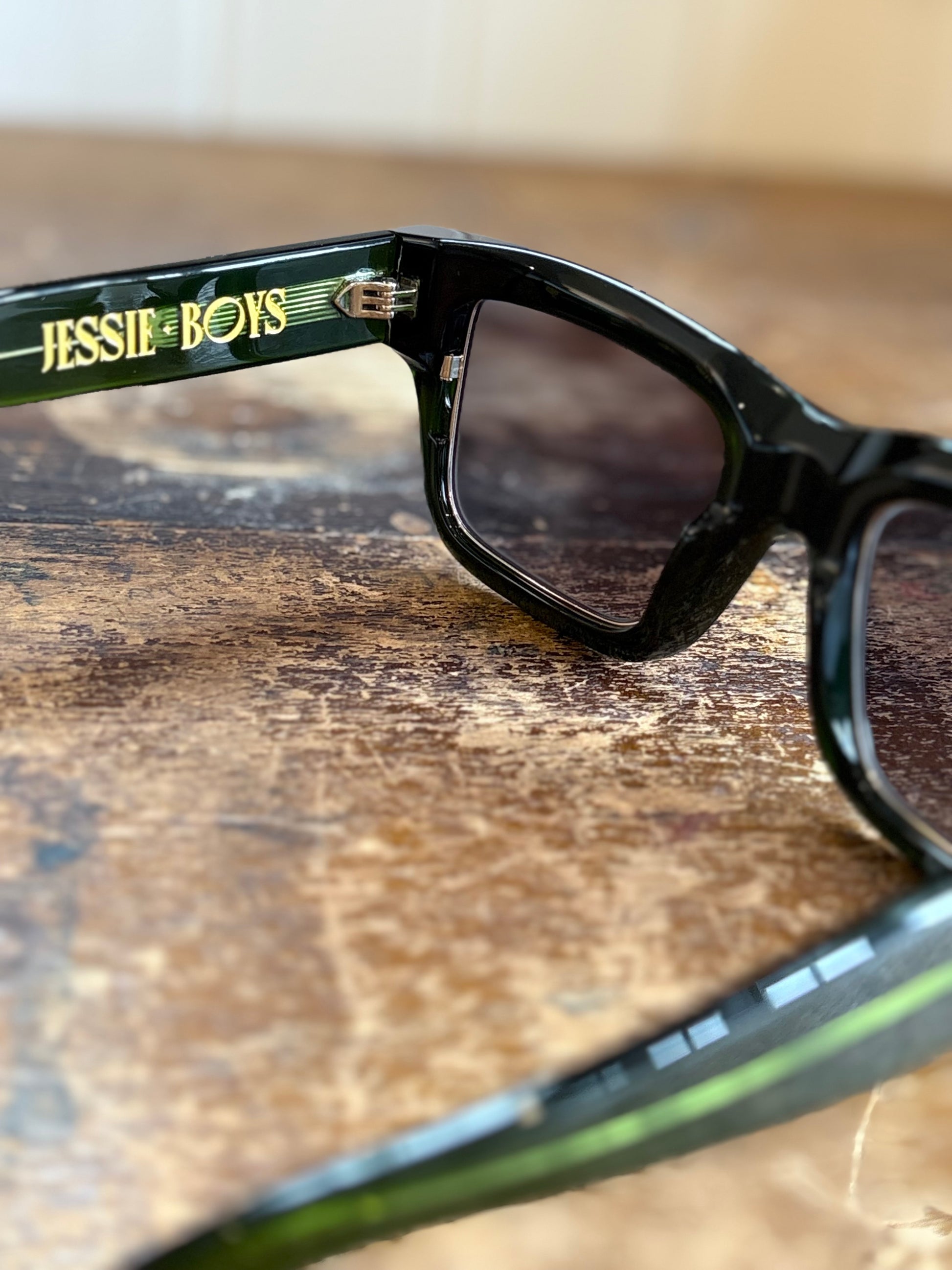 Hand finished in premium acetate with gold Jessie Boys insignia, each colour way carries its own personality.